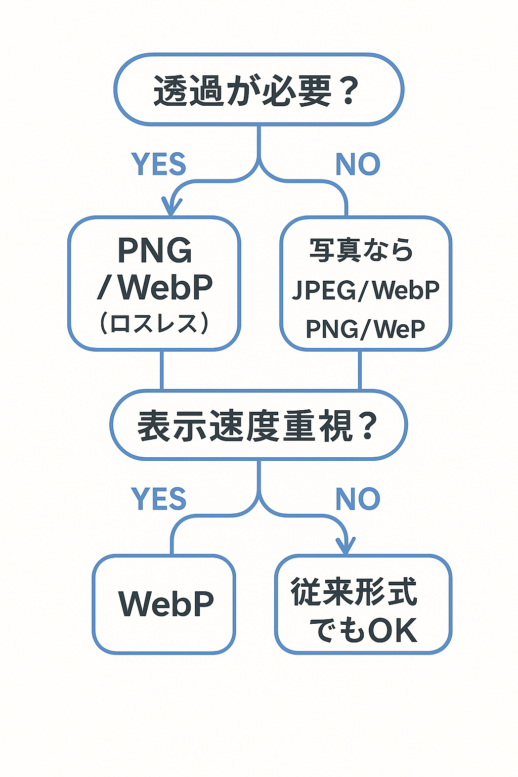 「なんとなく」で形式を選ぶのではなく、用途に合わせて使い分けることで、画質も表示速度も両立しやすくなります。ぜひ、日々の画像制作やサイト運営に活かしてみてください。